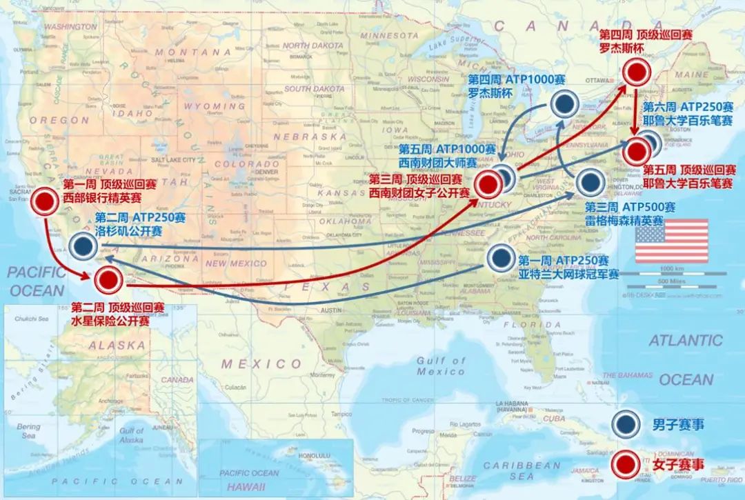 赛程延续6-7周左右,在暑假期间举办,方便运动员的竞技安排同时也为北美各地的观赛者提供了更加丰富的选择,以多站赛事拉动不同办赛城市沿线特色的文体旅游嘉年华,提升了多伦多、辛辛那提、亚特兰大等城市知名度。