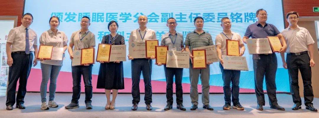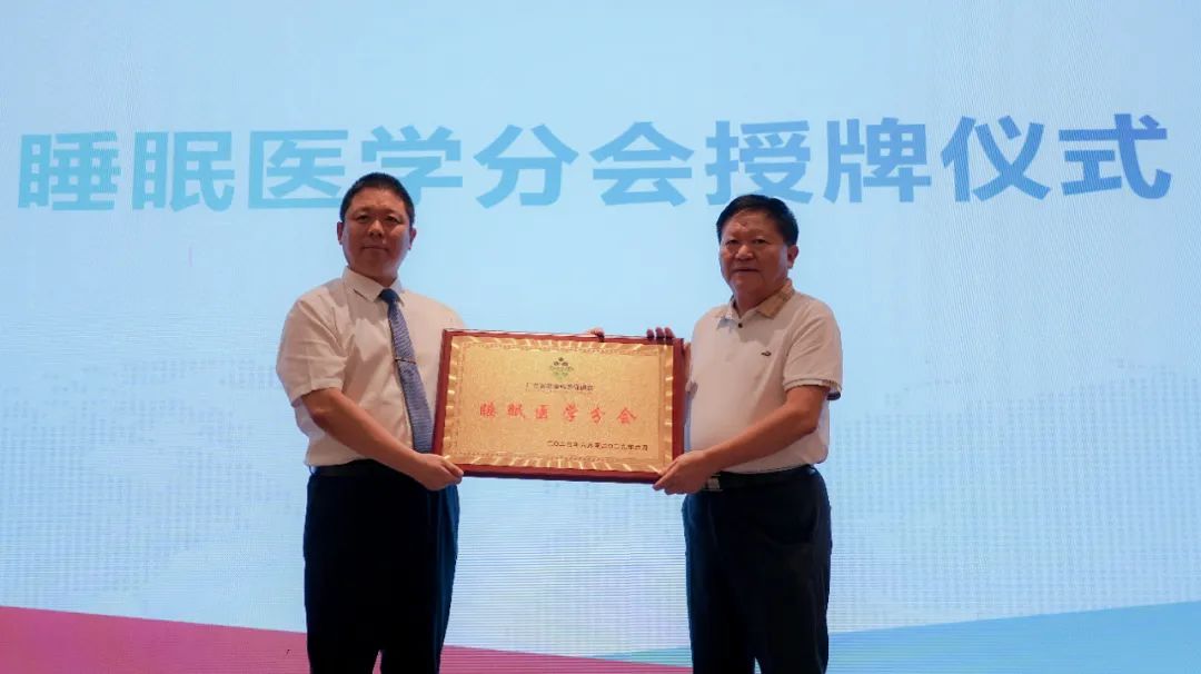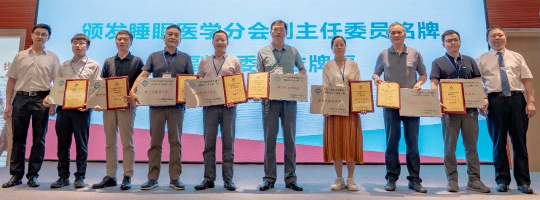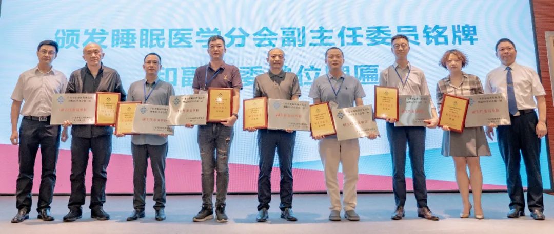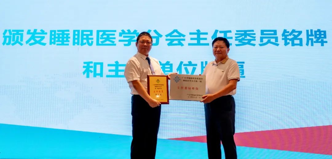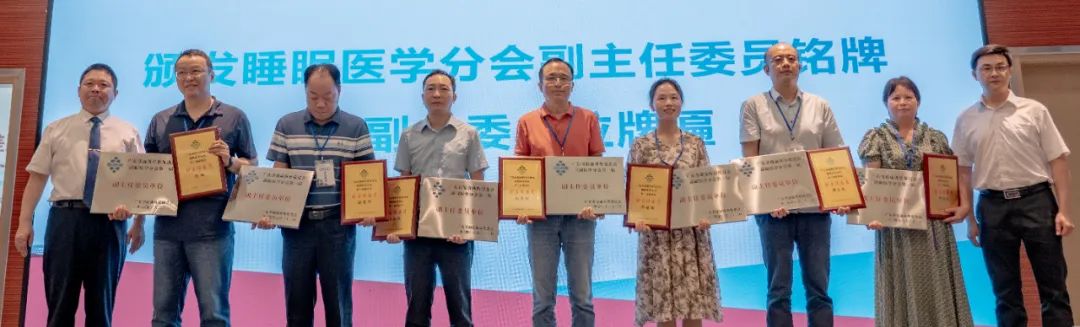 现场进行了广东省健康科普促进会睡眠医学分会主任委员、名誉主任委员、学术指导专家、秘书长、副主任委员授牌仪式,并颁发分会主委单位、副主委单位牌匾。