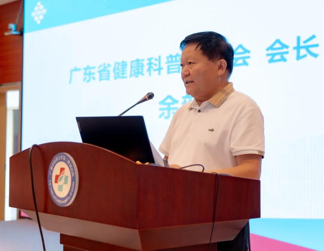 余新炳代表广东省健康科普促进会致辞,他表示,睡眠医学是研究睡眠、睡眠障碍及其相关疾病的医学领域。它涵盖了睡眠的生理机制、睡眠疾病的诊断与治疗等多个方面。而健康科普则是将医学知识以通俗易懂的方式传达给公众,以提高公众的健康意识和自我保健能力。