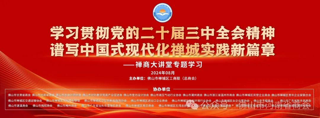 湾区时讯(编辑/刘秀 通讯员/佛豫商)8 月 8 日,禅城区工商联(总商会)举办禅商大讲堂专题“学习贯彻党的二十届三中全会精神,谱写中国式现代化禅城实践新篇章”,佛山市河南省商会为大讲堂协办单位,何传利会长携十余名会员单位代表组团参加学习。