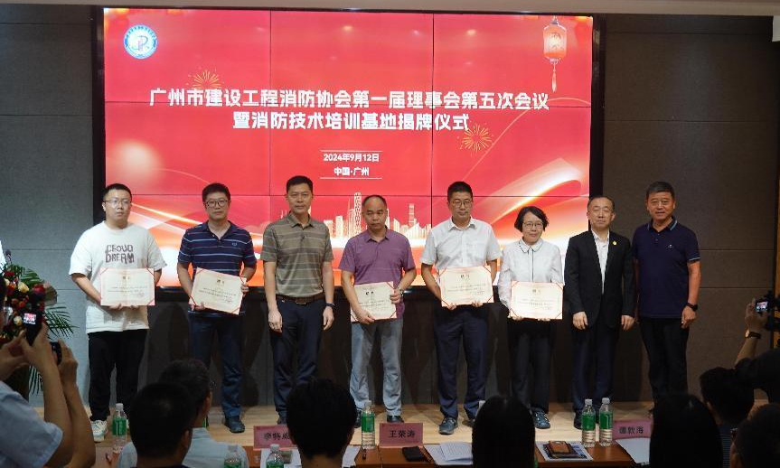 湾区时讯(编辑/刘秀 通讯员/唐亚鹏)9月12日,广州市建设工程消防协会第一届理事会第五次会议暨消防技术培训基地揭牌仪式在广州市城市建设职业学校举行。会议由协会执行秘书长林光亮主持,市住房和城乡建设局消防处处长李特威、市建设工程质量监督站站长曾庆鹏、各区住建局、质监站相关领导、骨干及专家代表和嘉宾媒体人士,应邀与协会理事、监事单位代表出席了会议,一同出席的还有市城市建设职业学校校长郑荣奕。