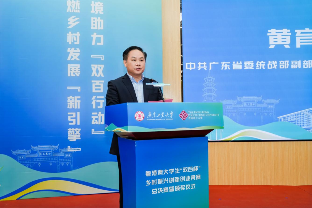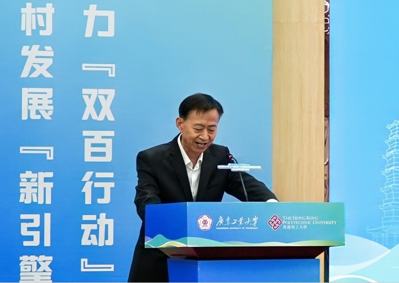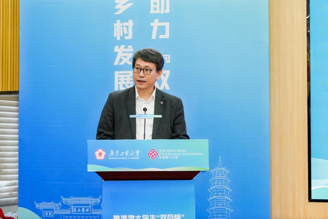 赵汝恒表示,广东工业大学此次联合香港理工大学举办“双百杯”竞赛,是落实两校今年4月签订创新创业人才培养合作协议,联合开展乡村振兴项目的重要举措,为两校人才培养、科研创新更好地服务大湾区建设奠定深厚基础。他指出,理大与广工即将联合落地的“学分制”大湾区沉浸式体验项目、“大湾区创业实习计划”和“大湾区青年创业培育计划”是两校深化跨境协同培养新格局的重要内容,有利于促进两校学生创新创业交流合作,希望两校学生合作成果落地创业,更好地赋能乡村发展;同时他希望理大和广工的同学通过联合参赛、联合创业,能更深入地了解彼此,互补优势、互相促进,以提升服务社会、服务乡村发展的素质和能力,为乡村振兴国家战略做出粤港两地青年应有的贡献。