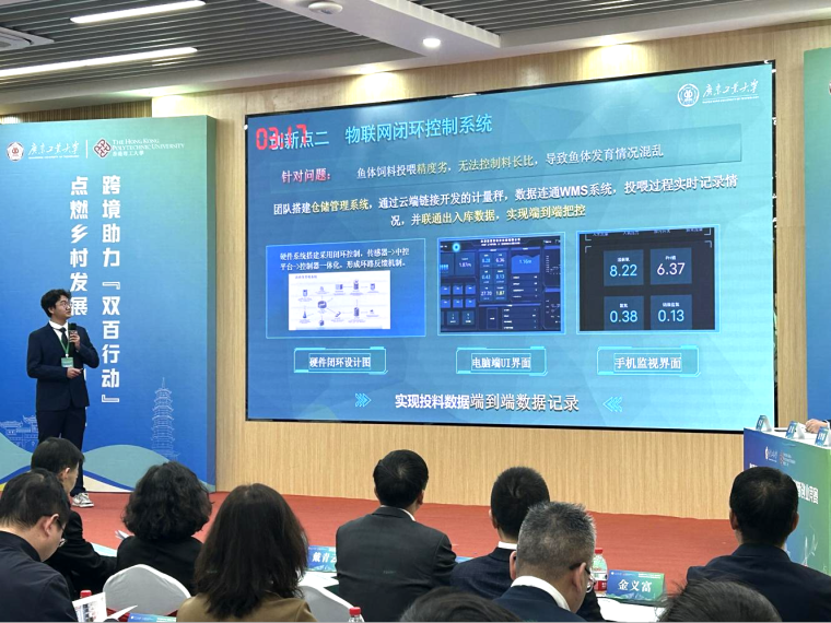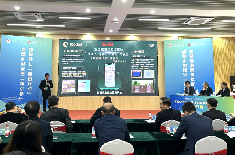 主办方先后组织由香港理工大学、香港岭南大学、澳门城市大学、广东工业大学等粤港澳三地大学生组成的“双百杯”竞赛调研团,奔赴东源、郁南等地实地考察调研,深入了解县域发展现状与需求,深入了解广东的历史文化、村情、村貌、风土人情,增强对乡村振兴工作的“第一感官”认识,掌握助力农村事业发展的第一手资料,进一步明确团队竞赛作品的重点和方向,进而为乡村振兴工作提出具有前瞻性、针对性和可行性的方案和建议,形成一批可运用、可转化、可推广、可复制的大赛成果。如揭榜挂帅赛道“智信先锋”团队结合东源县发榜的养殖技术优化项目需求,通过数字化和智能化手段提升高密度养殖效率,并将这一技术向西樵、郁南等高密度养鱼的县区进行推广;开放式赛道“祛金沁药”团队自主研发的内生菌和MICP/MIPP技术,能减少重金属的有效态和中药植物的吸收,保障中药材品质与安全;粤港澳联合赛道“声灵智能检疫”利用声纹识别技术,让检测精度可达94.96%,为中小型生猪养殖户提供智能疾病检测与预警解决方案。