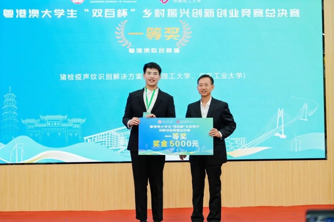 经过分赛道决赛和冠军争夺赛,由香港理工大学、广东工业大学联合组队的《猪检疫声纹识别解决方案》荣获粤港澳联合赛道一等奖,广东工业大学《智信先锋-AI高密度养殖技术开发》荣获揭榜挂帅赛道一等奖,广东药科大学《祛金沁药-中药植物重金属污染阻控领域先行者》荣获开放式赛道一等奖,并摘得总冠军。香港理工大学、香港岭南大学、澳门城市大学、广东工业大学、汕头大学、广东药科大学、广东技术师范大学、岭南师范学院、珠海科技学院、广东轻工职业技术大学、广州理工学院等11个高校荣获“优秀组织单位”。