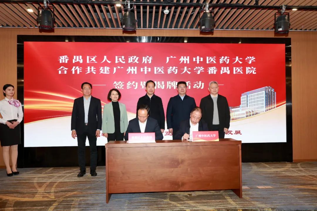 随后,与会嘉宾领导见证番禺区人民政府、广州中医药大学合作共建广州中医药大学番禺医院正式签约,共同为“广州中医药大学番禺医院”揭牌。