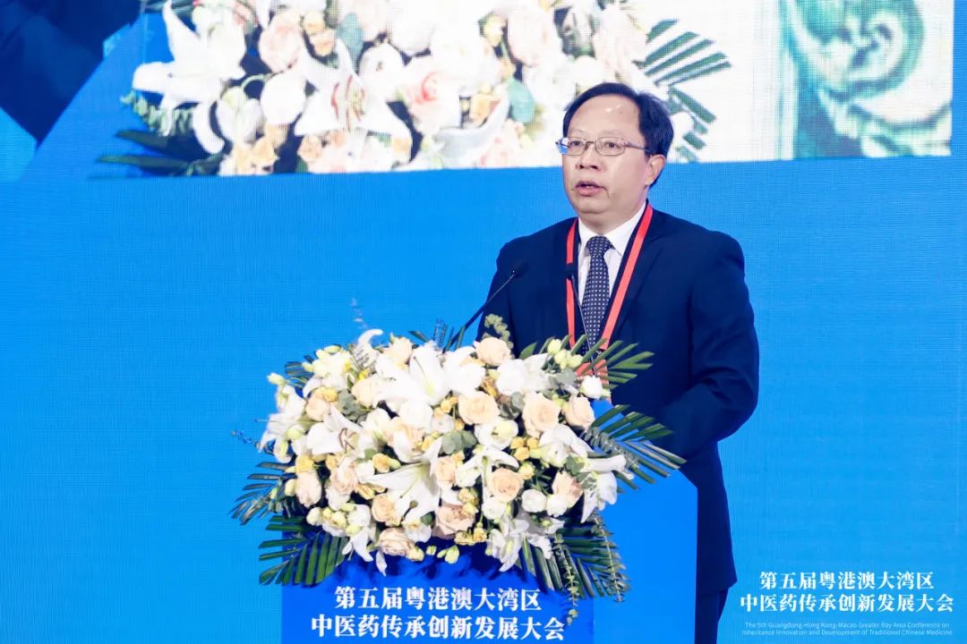 国家中医药管理局、香港特别行政区政府医务卫生局、澳门特别行政区政府卫生局、粤港澳大湾区内地 9 市政府分管领导及主管部门负责人、院士、国医大师以及粤港澳三地中医医疗、教育和产业界代表逾400人参会。我校校长翟理祥、副校长杨全,港澳台和外事工作部、科学技术部、发展规划部、药学院、中药学院、第一临床医学院、中医学院等部门负责人和代表现场参会。