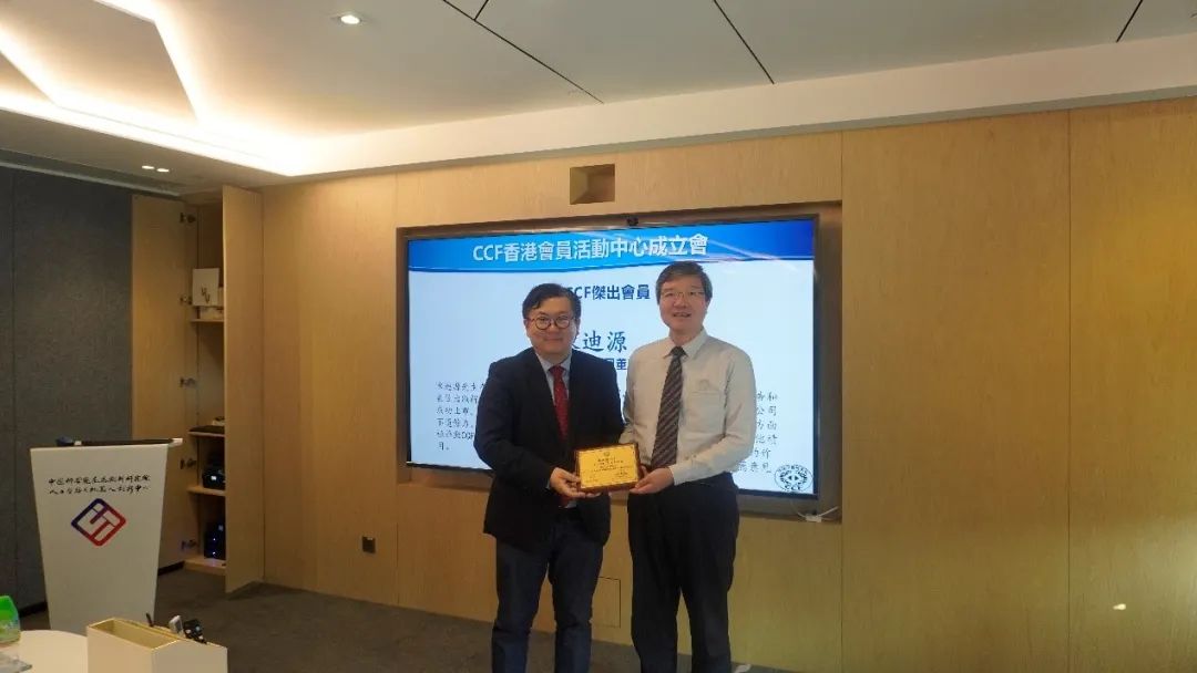 成立会上还对香港地区新晋升为“CCF杰出会员”的三位会员:李闵溟、陈迪源、郭嵩,现场授牌。