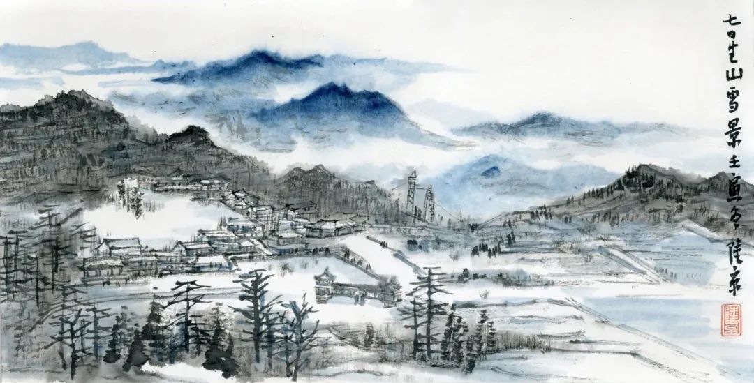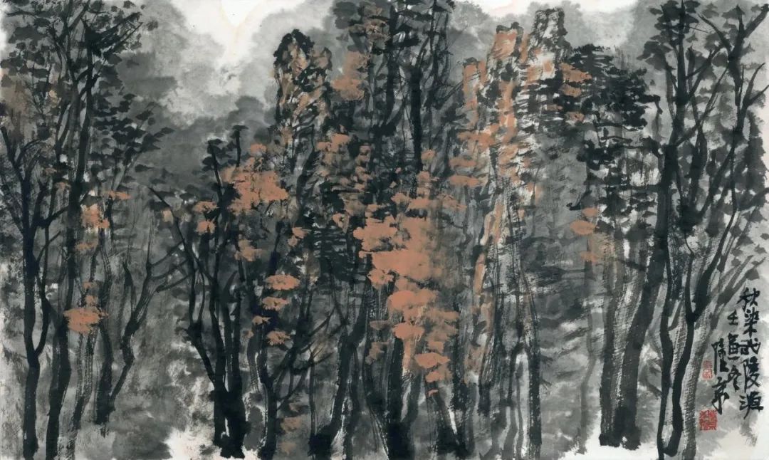 行路万里,默契自然,终归于我。对于画家宋陆京来说,对应的则是他对万里路所见的山川观照。在其山水画作品中呈现出一个基本的特点,即是无谓东西,非南非北。体现在画作的呈现形式上,他擅于比照宋元明清山水画图示所传递出的审美感情,最终打乱的所谓“南画”、“北画”的倾向与格局。这当然与其生在中原的厚重文化的滋养有关,与其“北学”“南习”的足履有关。众所周知,中原自先秦以降,多出“策士”,比如苏秦、张仪,比如诸葛、司马;概因他们能游走东西,比对南北,构建自己的人格观与价值观,最终凝结为他们的自我。从宋陆京的履历来看,其不外如此。他不但习惯比对观察不同地域空间的山水形态,也比对中、南、北的文化特质及艺术语言的呈现形态,从中国山水画史纵向节点的审美差异上取其共性,攫取杂糅。这一特质,在宋陆京国画作品的视觉呈现上,特别明显,诸如其表现山水林木之间上下高远、远近平远、前后深远、左右阔远以及整体与局部的虚实关系,不惟笔墨、不惟性情、不惟物象,往往注重在自然景物中寻找笔墨精神构成的同时,经常采用平面构成等新形式,进行着大胆的乱中有序的杂糅后再造。这使得在其画作中我们看不到却能精准感受出范宽、王原祁、石涛的传统气脉存在,也在恍惚间感觉有黄宾虹、李可染的积墨与渍墨的存在;这是一种难得的文化艺术传承,古人今人、南人北人,不再是个体的存在,是一种文化的存在。所以,画家在创作中,大胆汲取北方山水画浑厚雄奇的基础上,掺和南方山水画的清灵气息,求质朴、求率真、求纵横,用粗犷的山水画语言在古意的趣味中流溢出一种清新的气象,集南北山水画风貌于一炉,汇中西古今于一体,使其画作逐生形成了浑厚不失秀逸,雅穆兼具苍润之面目,更融入了现代审美的语言,充分表现了画家个体主观性与传统人文精神的继续。藉自身对自然独特之视角诠释了情景交融之美、古今交融之神,令其作品始终弥漫著一股应有的份量。可以戏言说,这是在宋陆京画笔下,是《诗经》默契了《离骚》,是花木兰艳遇了孔雀东南飞后,又穿越到了当代。