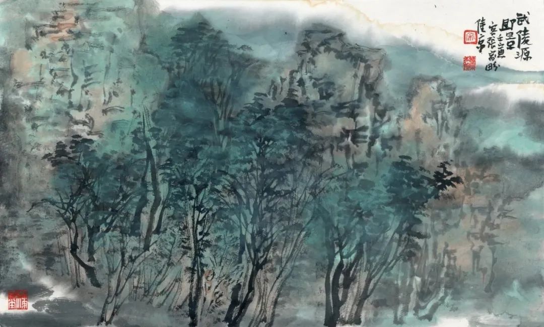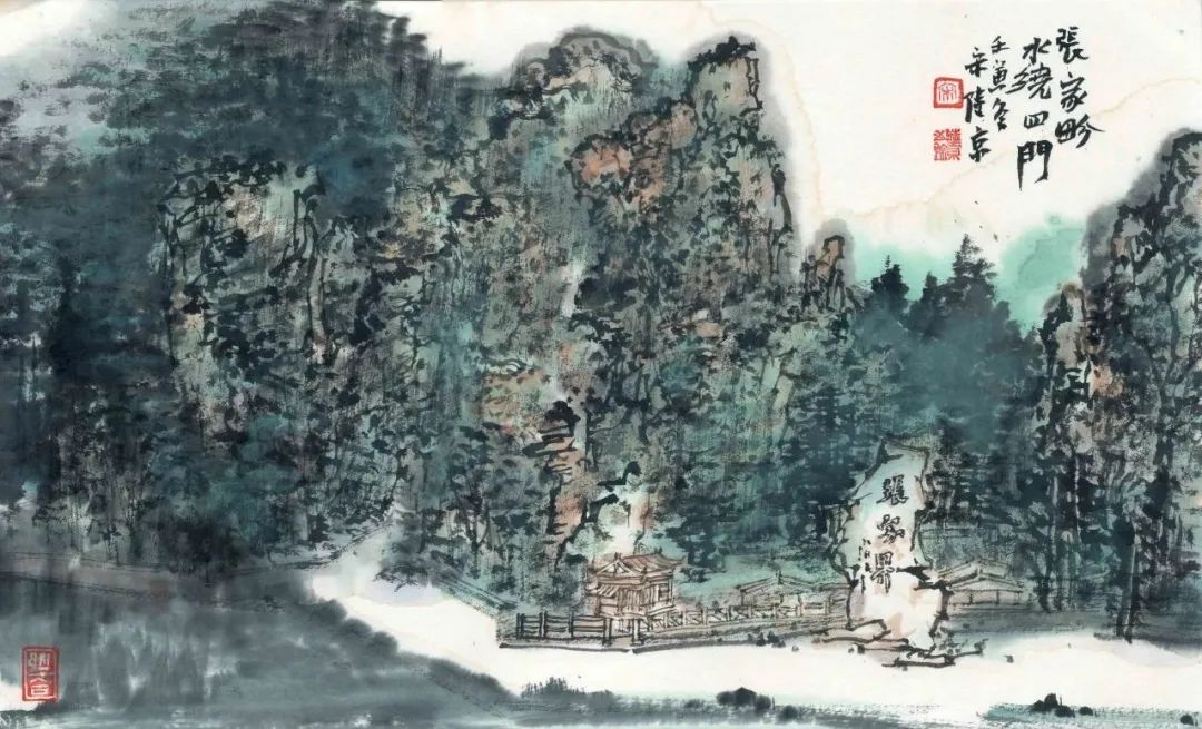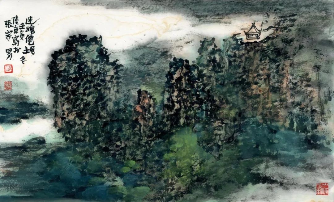 在宋陆京的作品中,他也是在以时代的审美观,选取当下人们心境,以精心的构思,巧妙的布局,精湛的笔墨,纵情挥洒,个性格外显豁。其画作,山水花鸟皆精,无论是小品或巨幅,皆深具浓郁而绵密的艺术魅力。或许是他长于篆刻书法的原因,他特别注重线的骨法用笔与形式表达,这并不是说他喜欢线条的运用,而是他在根本上明白并解决了书法线条与国画线条的形象差异与情感差异。同时,宋陆京也及其注重水墨与敷色的哲理性与情感性的表达;正所谓墨分五彩是道,色分性情是理。在宋陆京的作品中的呈现,那就是墨润华滋,浑然祥和。也只有如此,自然提供的源源不断的感性体验才能借助精妙的笔墨之道而被激活和重构,由此,营造出新时代山水画的全新面貌。这样,赏其画时,便会有种莫名的感动,并携你步入一个延续不断的自然礼赞中去。
