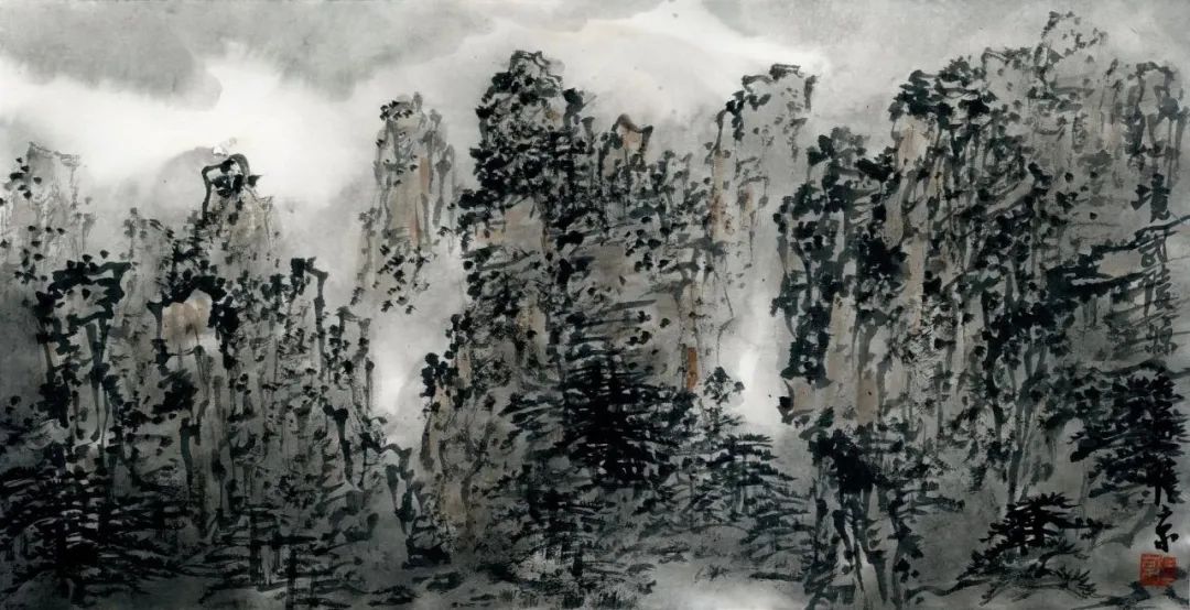 可以看出,画家是在试图重新解读传统、乃至切析传统技法,走入造化的过程中,力求南与北、古与今的再创与新生。故此其画作,已无所拘泥,少所碍绊,笔墨酣畅,浑厚华滋,境界阔大,浑茫深邃。显然,这是画家个体生命在古今文化的淘洗锤炼之后,自然而然所焕发出的一种本真精神与本能追求。
