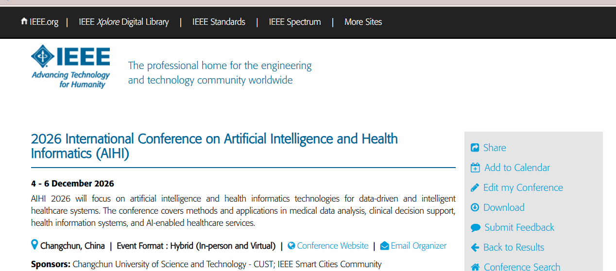AIHI 2026已通过并上线IEEE官网:https://conferences.ieee.org/conferences_events/conferences/conferencedetails/71395
