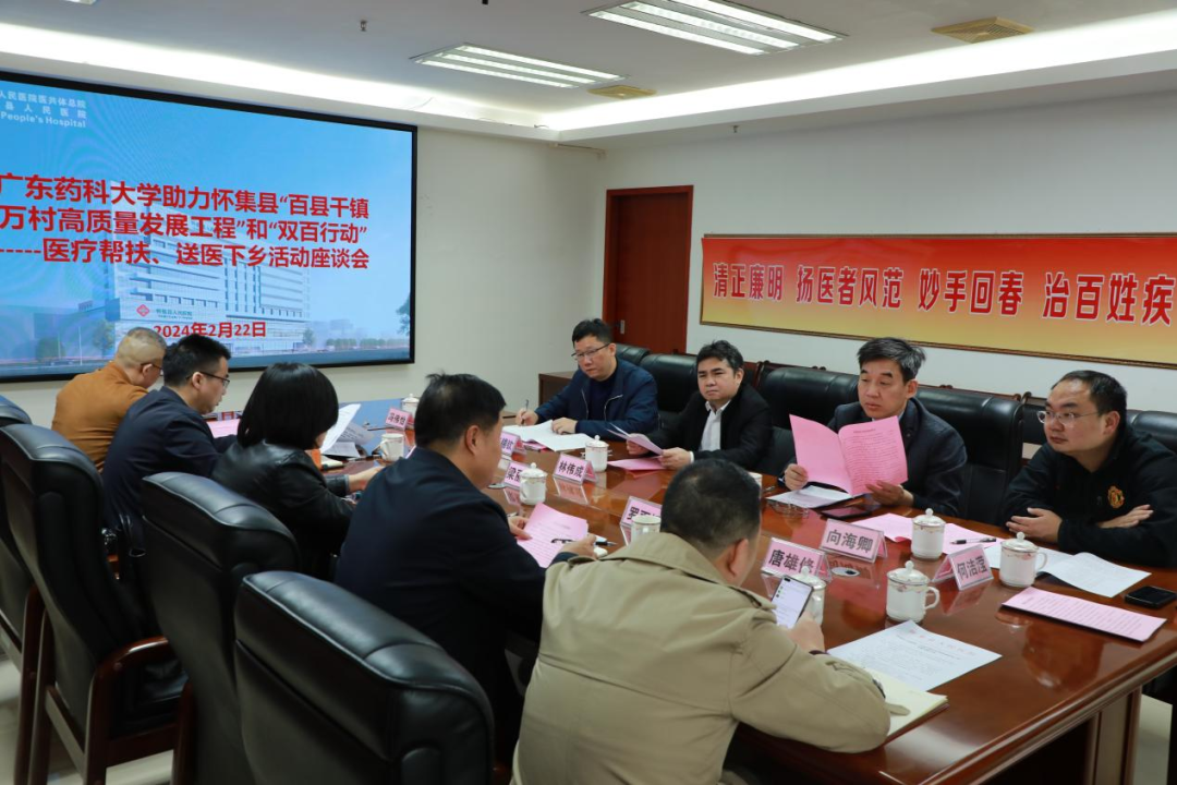 当天,院地双方在怀集县人民医院召开了帮扶座谈会。陈应国对医疗提升工作组的到来表示热烈欢迎,并表达了与广药大和附一院深化合作的强烈意愿。他强调,县人民医院将依托广药大和附一院的专业优势,明确专科发展方向,制定“双百行动”工作项目清单,稳步推进各项工作的有序开展。