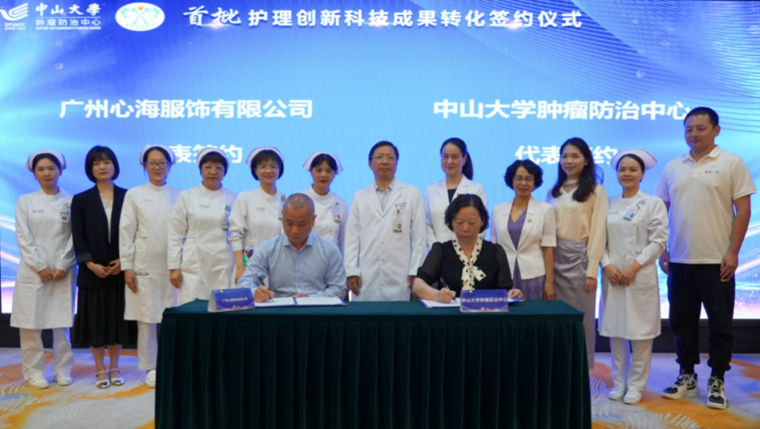 中心与广州心海服饰有限公司进行儿童输液港衣服等五项授权专利护理被服类转化项目签约