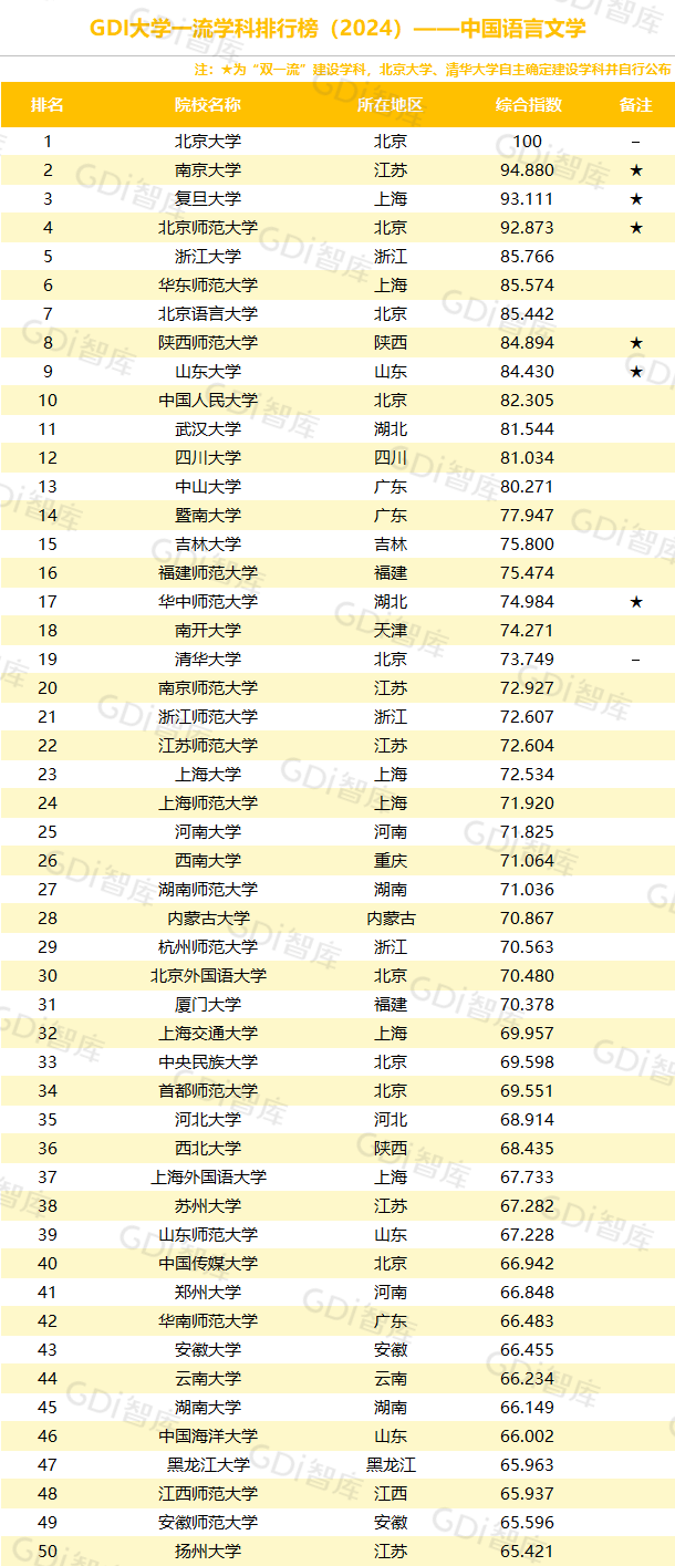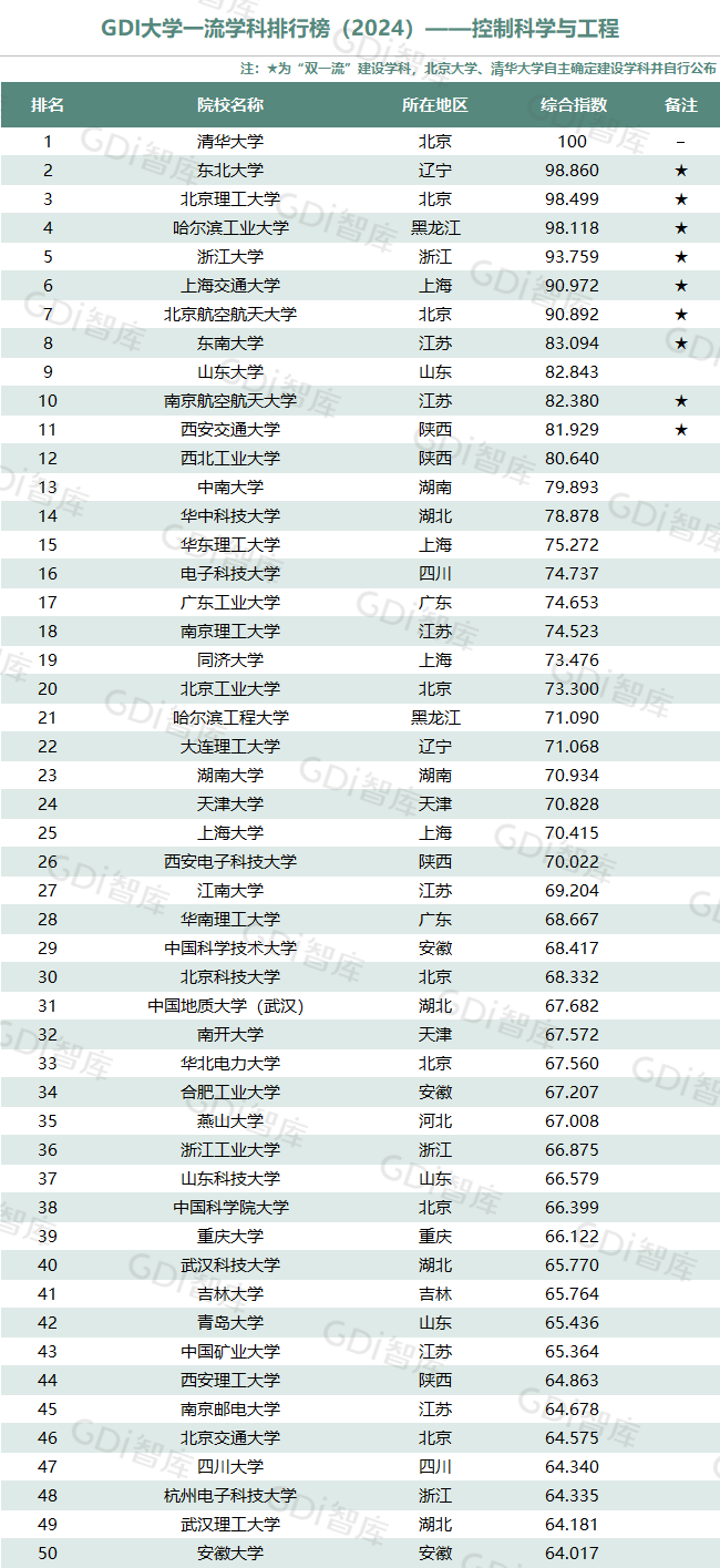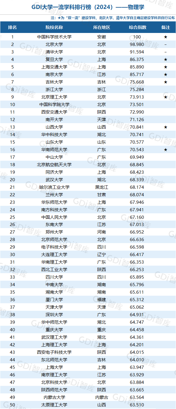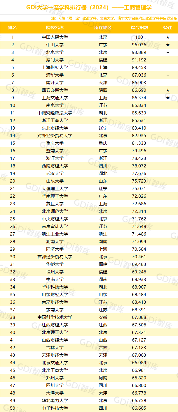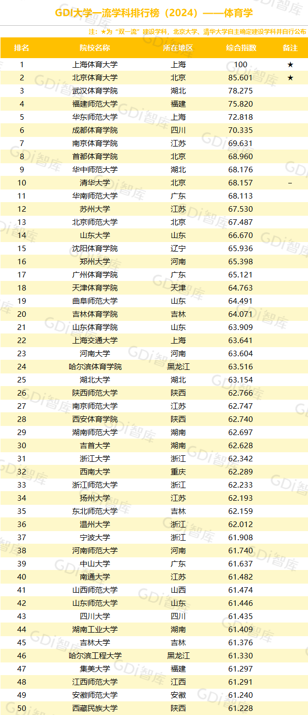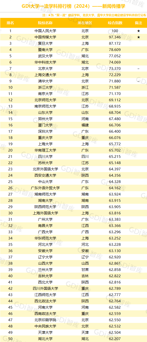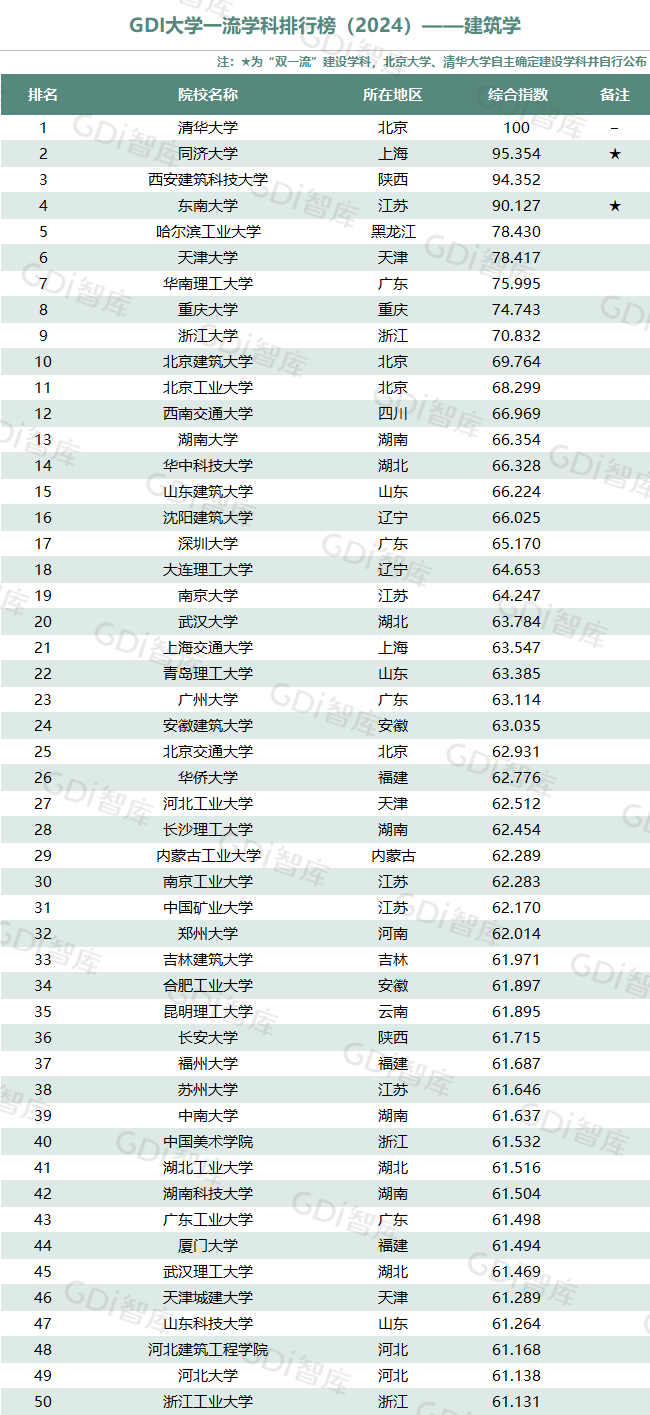 学科是高校承担大学功能的基本载体,是实现高等教育内涵发展的基本支撑,其发展水平在一定程度上决定大学的学术声誉和综合实力。GDI大学一流学科排行榜(2024)对20个人文社会学科、34个自然科学学科和37个工程学科进行评价,涵盖上述学科设有硕士点的全部院校(不含香港特别行政区、澳门特别行政区和台湾地区院校,未涉及军事类院校)。