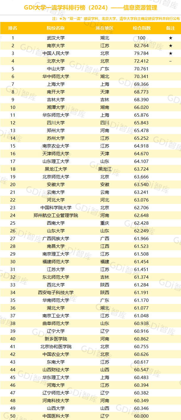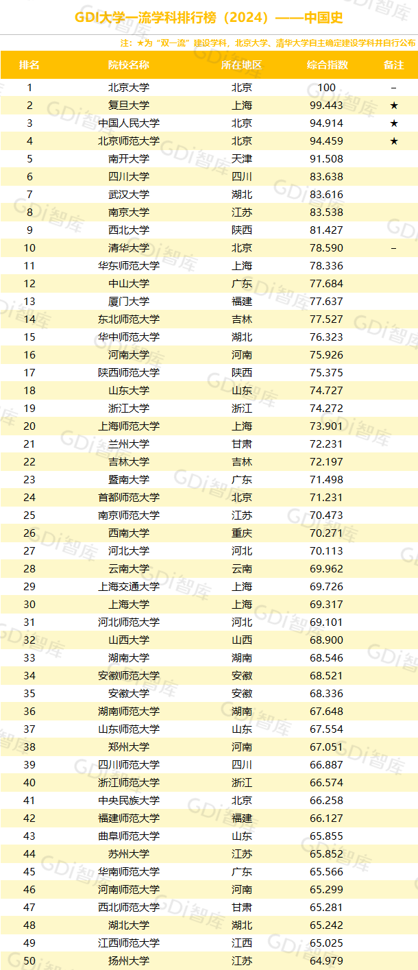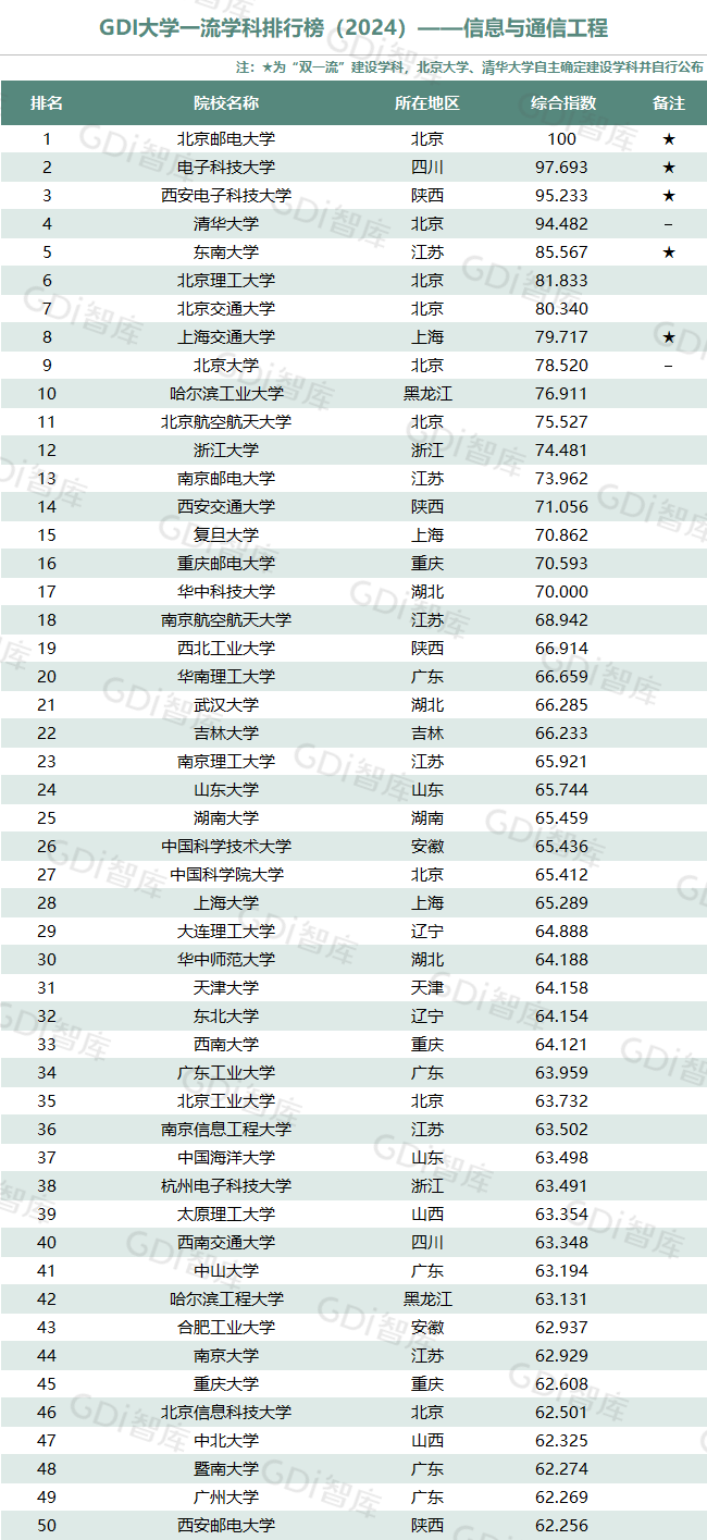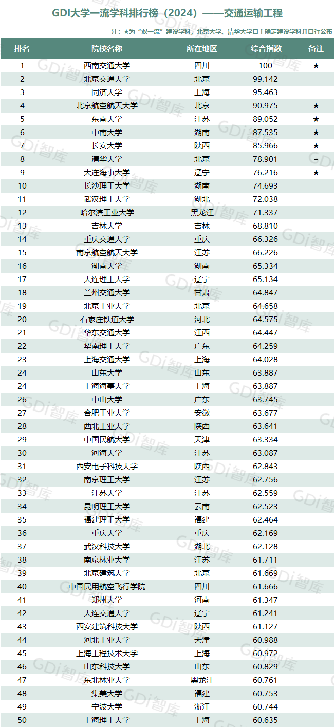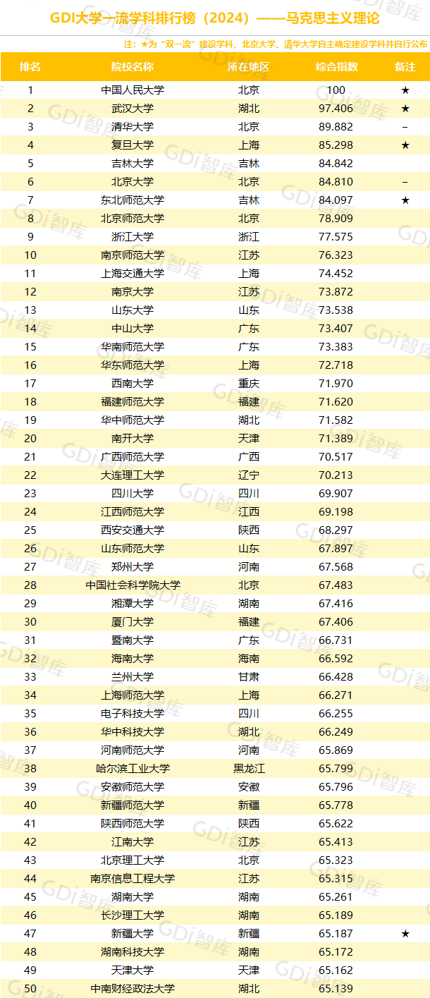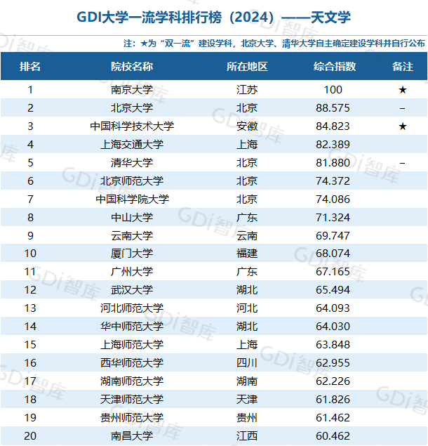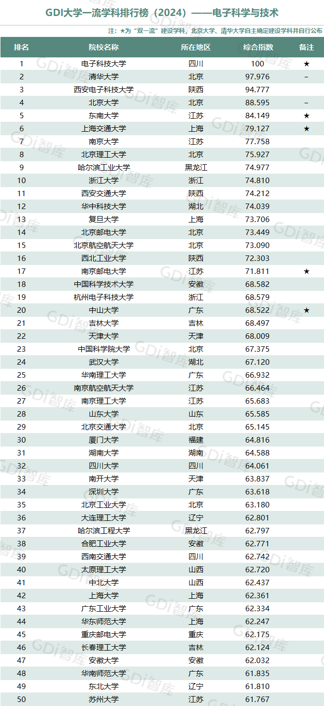 学科是高校承担大学功能的基本载体,是实现高等教育内涵发展的基本支撑,其发展水平在一定程度上决定大学的学术声誉和综合实力。GDI大学一流学科排行榜(2024)对20个人文社会学科、34个自然科学学科和37个工程学科进行评价,涵盖上述学科设有硕士点的全部院校(不含香港特别行政区、澳门特别行政区和台湾地区院校,未涉及军事类院校)。