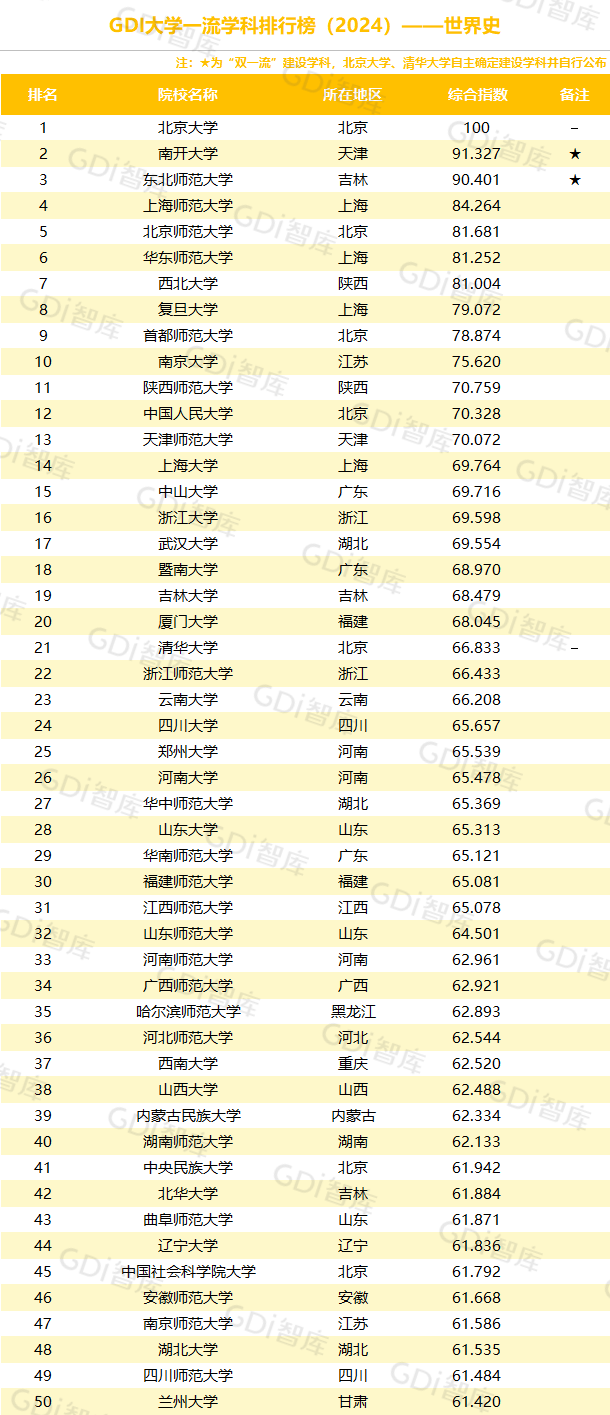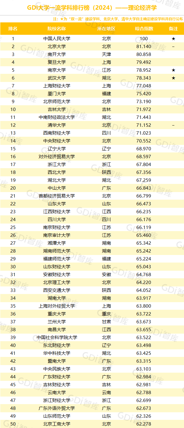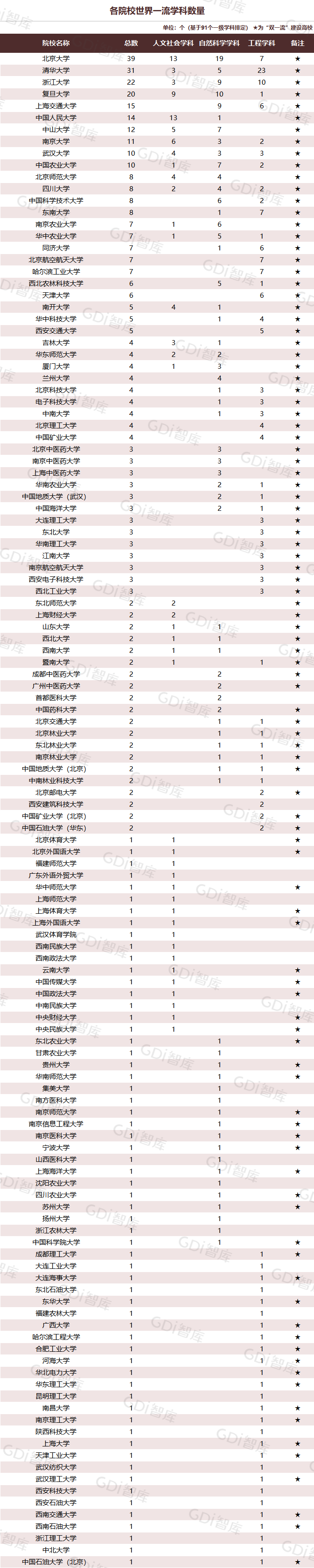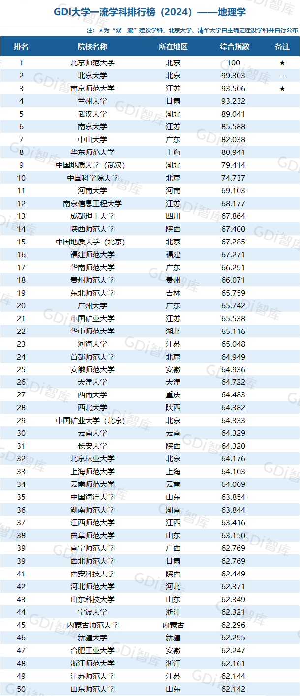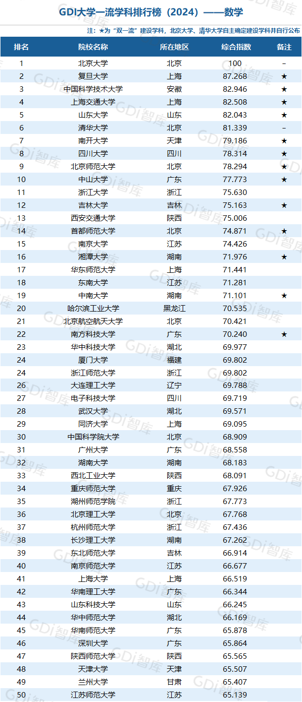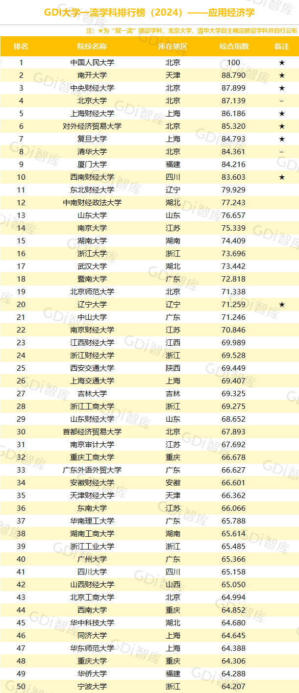 学科是高校承担大学功能的基本载体,是实现高等教育内涵发展的基本支撑,其发展水平在一定程度上决定大学的学术声誉和综合实力。GDI大学一流学科排行榜(2024)对20个人文社会学科、34个自然科学学科和37个工程学科进行评价,涵盖上述学科设有硕士点的全部院校(不含香港特别行政区、澳门特别行政区和台湾地区院校,未涉及军事类院校)。
