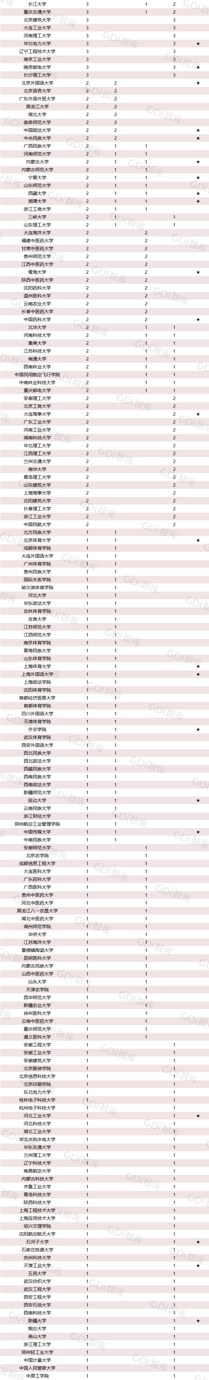 72所院校有工程学科进入“世界一流学科”。其中清华大学有23个,数量位居第一;浙江大学有10个,排名第二;北京大学、哈尔滨工业大学、东南大学和北京航空航天大学分别有7个,并列第三。
