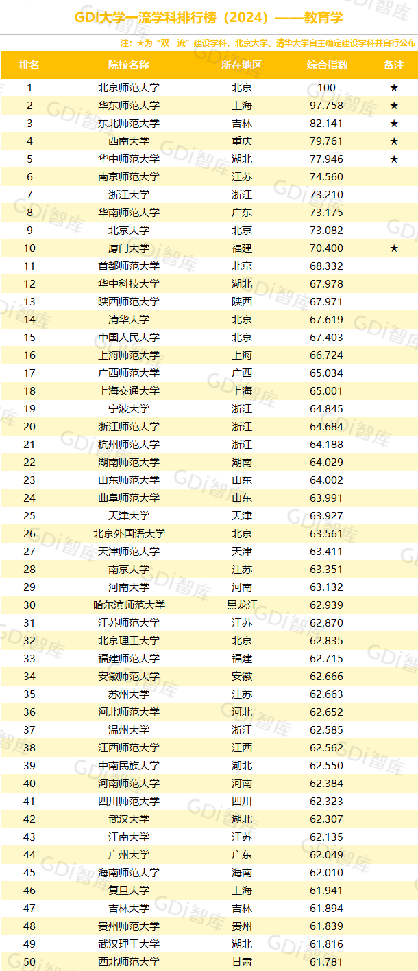 GDI大学一流学科排行榜(2024)聚焦立德树人,凸显人才培养,构建“人才培养”“科学研究”“学科声誉”“二次评估”四维评价体系,对相关院校学科发展进行科学评价。