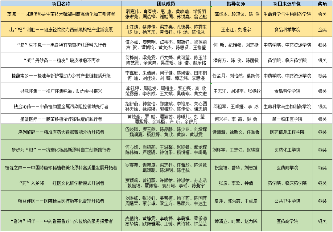 广东药科大学获奖名单