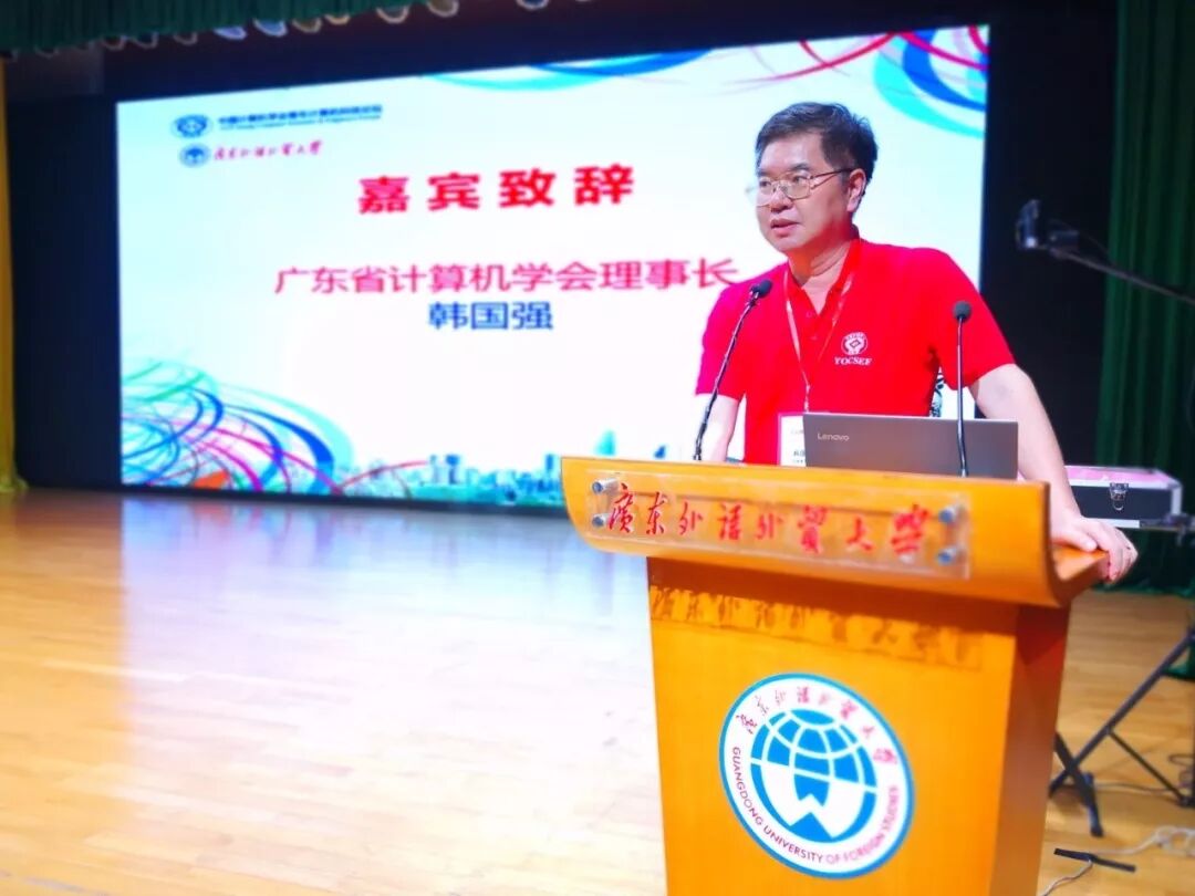 图3:广东外语外贸大学信息学院院长蒋盛益主持会议